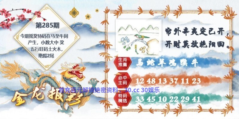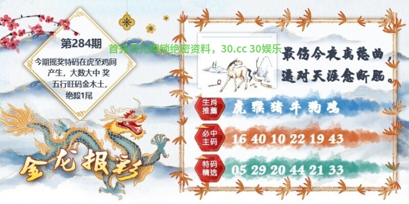 284期:天地两肖╠天肖+虎鸡╣开:牛41中 |